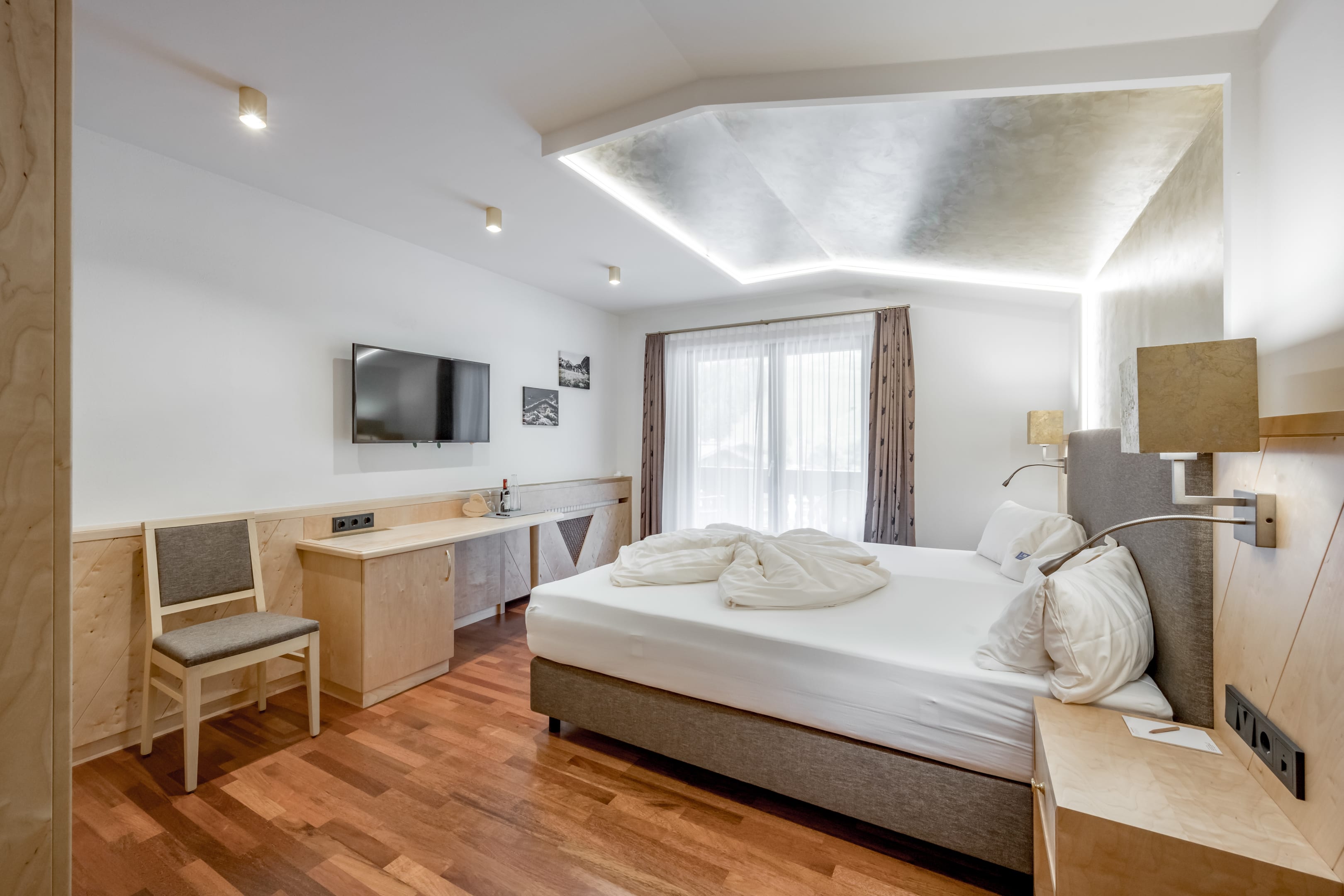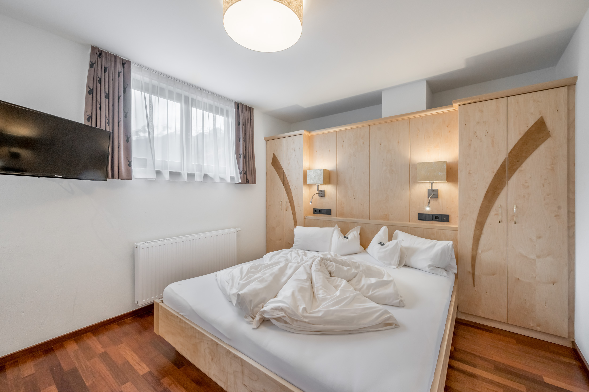 Mit Parkettboden | zwei Schlafzimmer | Badezimmer mit Dusche, Badewanne und WC | Balkon | Minibar | Safe | Sat TV | Telefon | WLAN