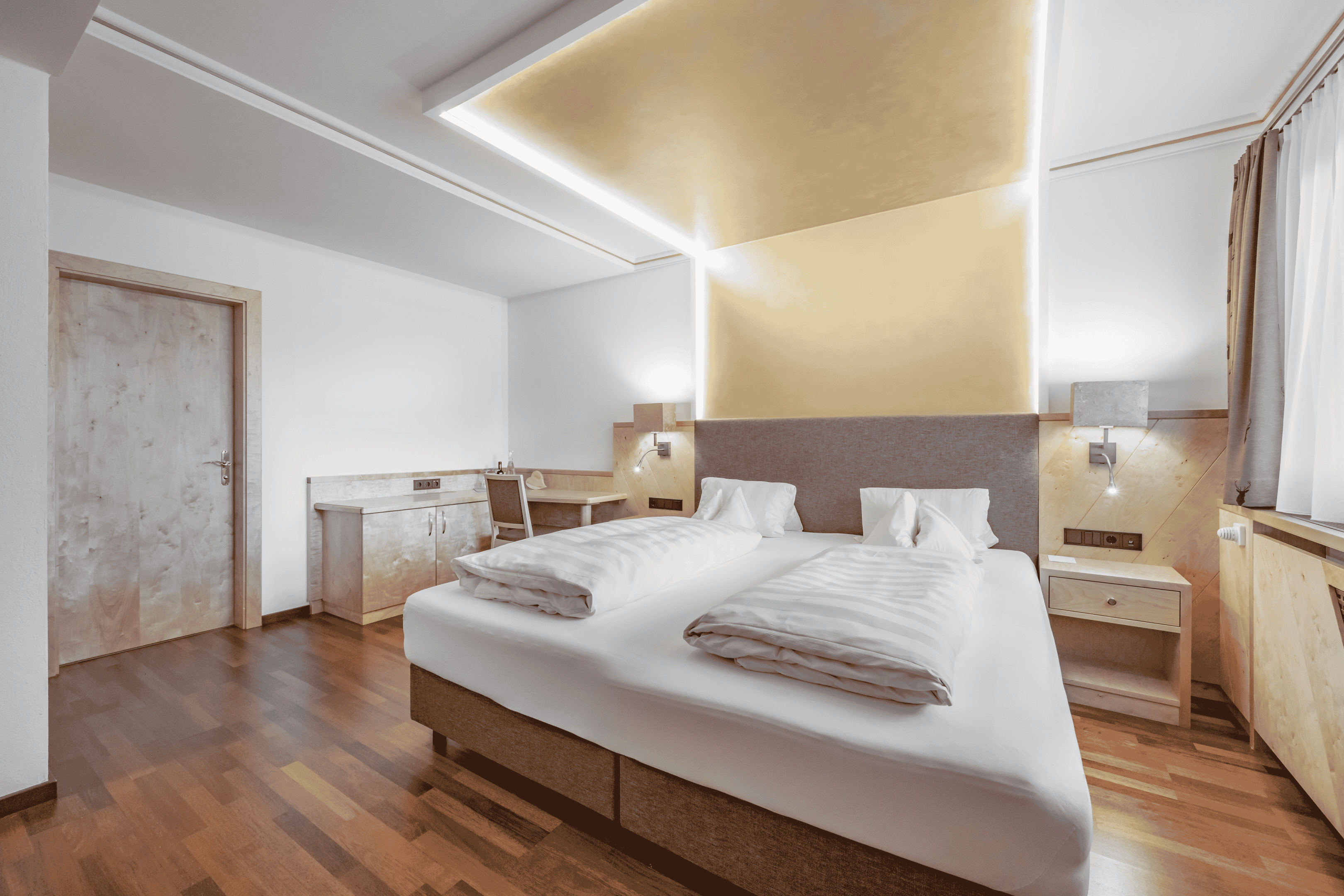 Con parquet o moquette | camera da letto con area soggiorno e divano letto | bagno con doccia (alcune con vasca) e WC | prevalentemente con balcone e stufa in maiolica | minibar | cassaforte | TV satellitare | telefono | wi-fi